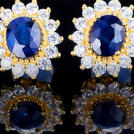Light Luxury Silver-Plated Sapphire Earrings – Elegant Blue Gemstone Studs for Women