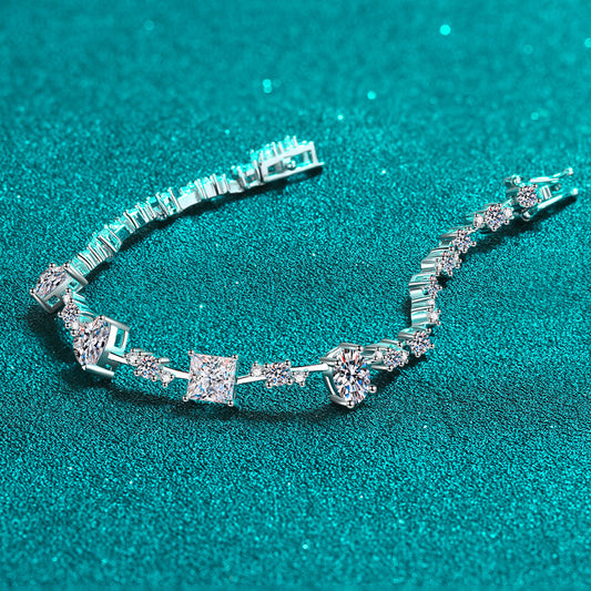 925 Sterling Silver Moissanite Tennis Bracelet – Square Cut, High Brilliance