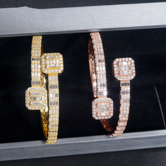 Square Moissanite Bangle Bracelet – 925 Sterling Silver
