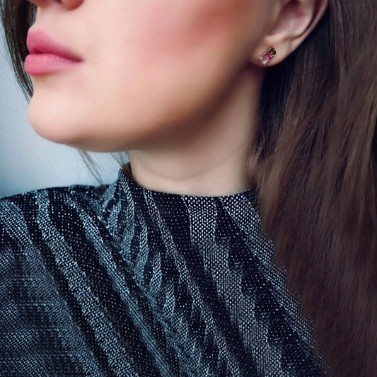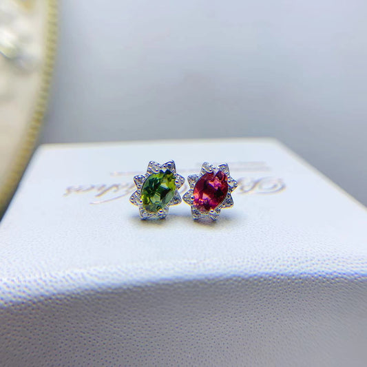 Natural Tourmaline Stud Earrings | 925 Sterling Silver Delicate Mosaic Design
