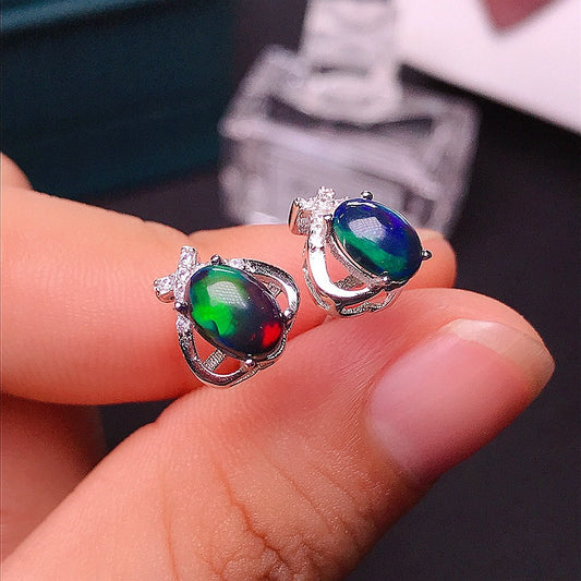 Natural Black Opal Stud Earrings | Sterling Silver Inlaid Gemstone Jewelry
