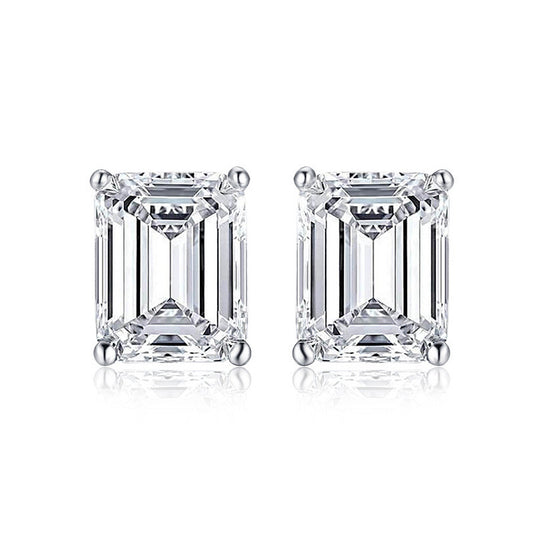 Simulated Diamond Zircon Stud Earrings | Rectangular Four-Prong Setting