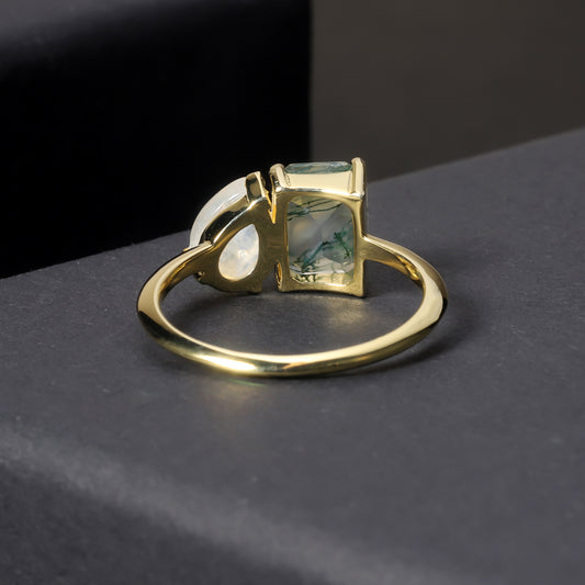 925 Sterling Silver Agate Ring | Square & Oval Multi-Gemstone Design