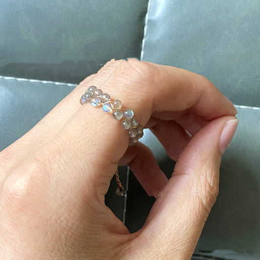 Pale Aurora — Natural Labradorite Wire-Wrapped Ring | Gold-Filled