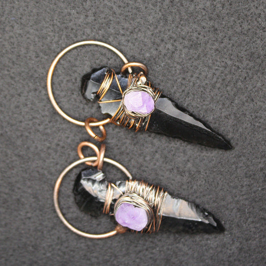 Oracle — Wire-Wrapped Obsidian & Amethyst Crystal Pendant Necklace | Heirloom Collection