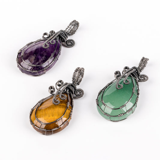 Nightveil Teardrop Wire-Wrapped Crystal Pendant | Natural Gemstone Necklace