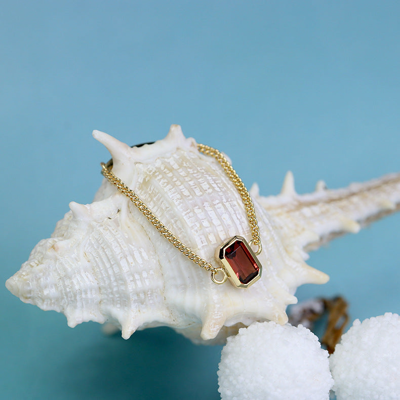 Garnet Chain Ring | Gold-Tone Silver Adjustable Ring for Women