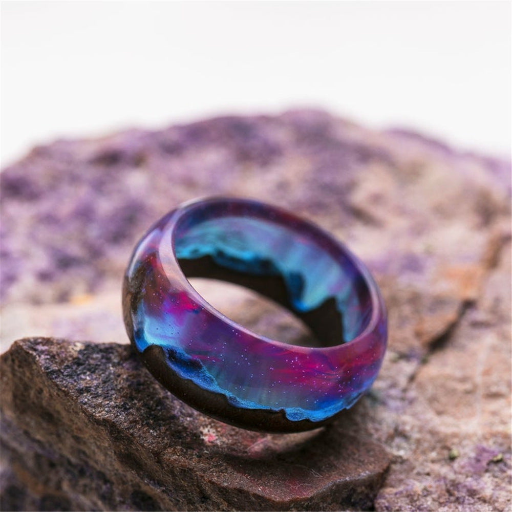 Resin Wood Glow Ring | Aurora Starry Sky Design for Men & Women