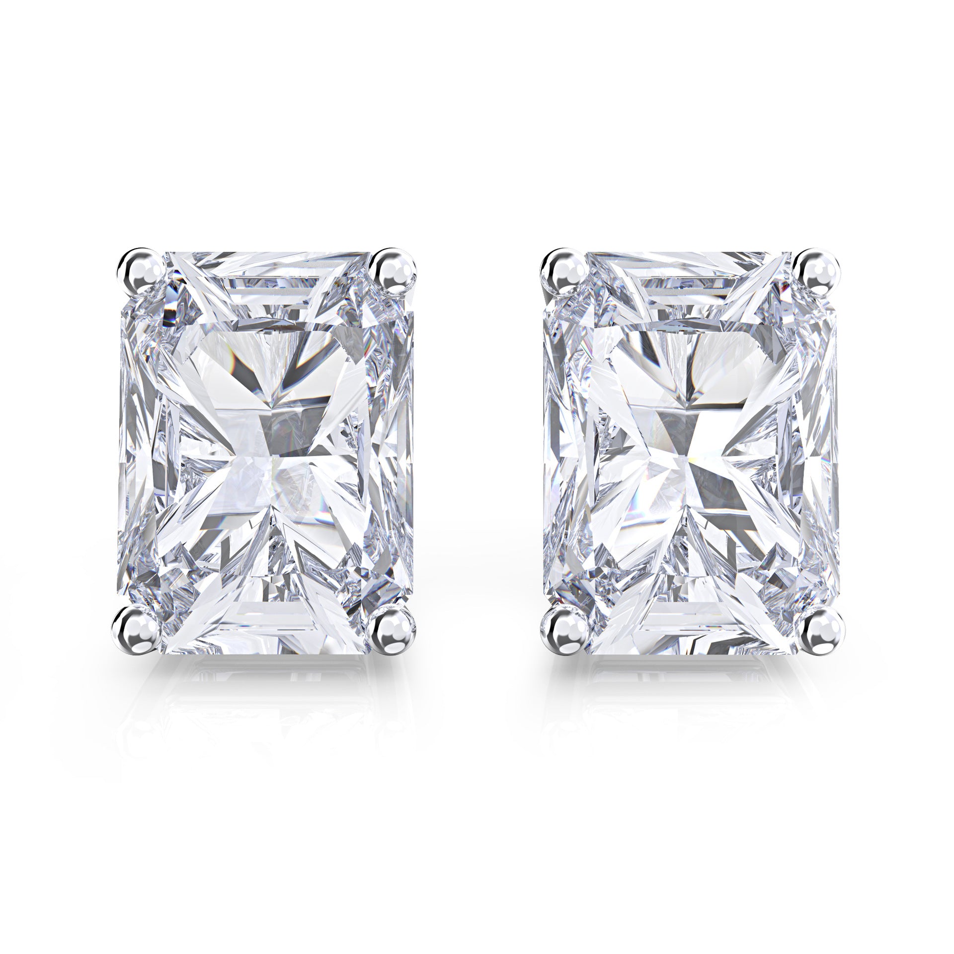Simulated Diamond Zircon Stud Earrings | Rectangular Four-Prong Setting