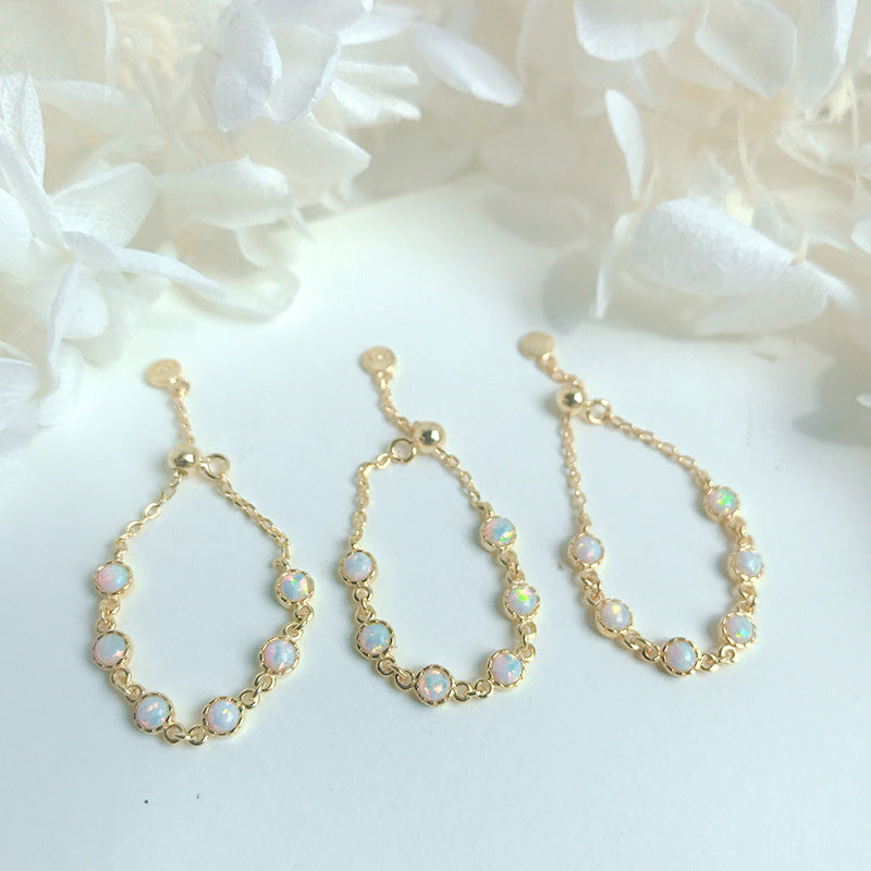 S925 Sterling Silver Gold-Plated Opal Chain Adjustable Ring