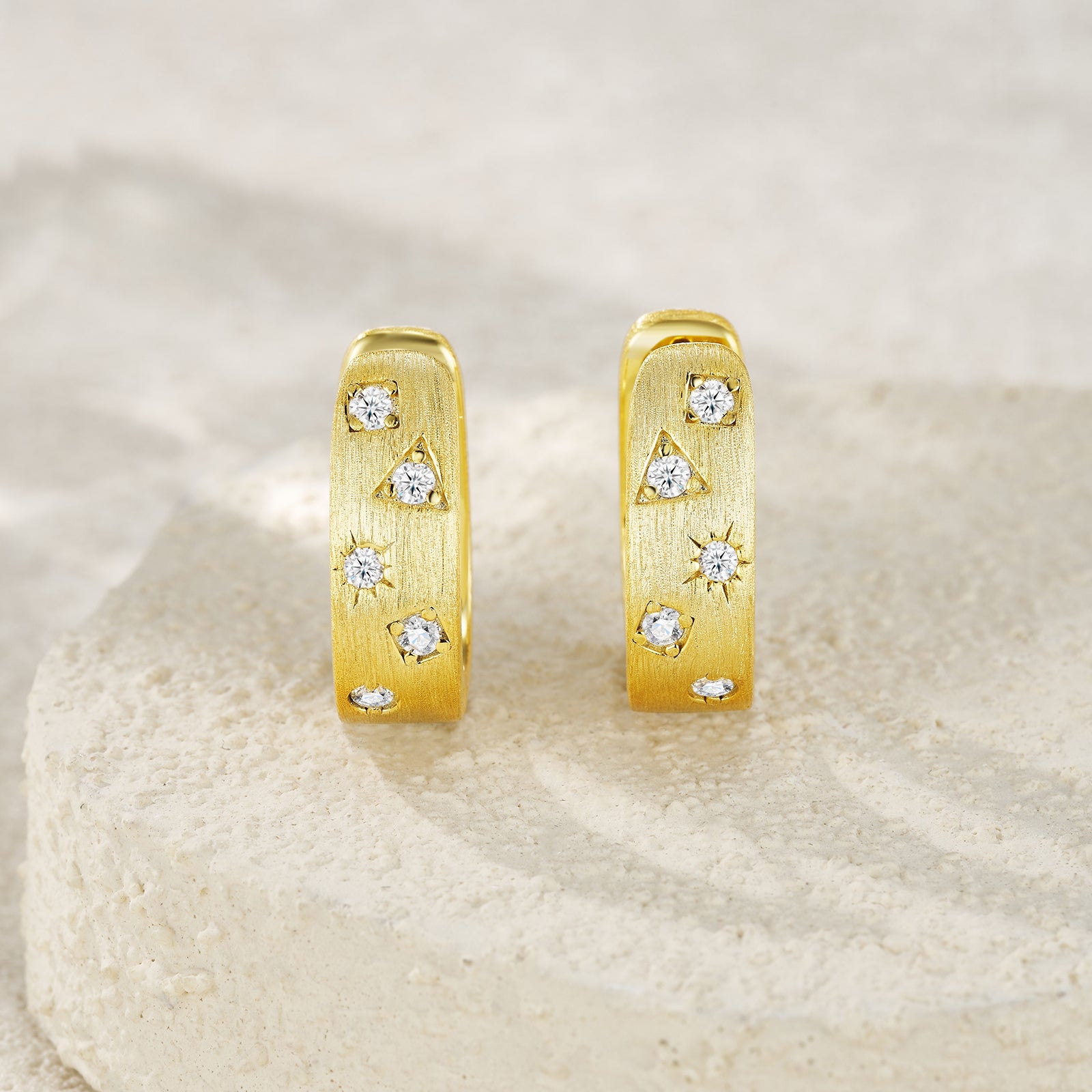 Star Track Moissanite Huggie Earrings | S925 Sterling Silver, 18K Gold Electroplated | Geometric Luxury Studs